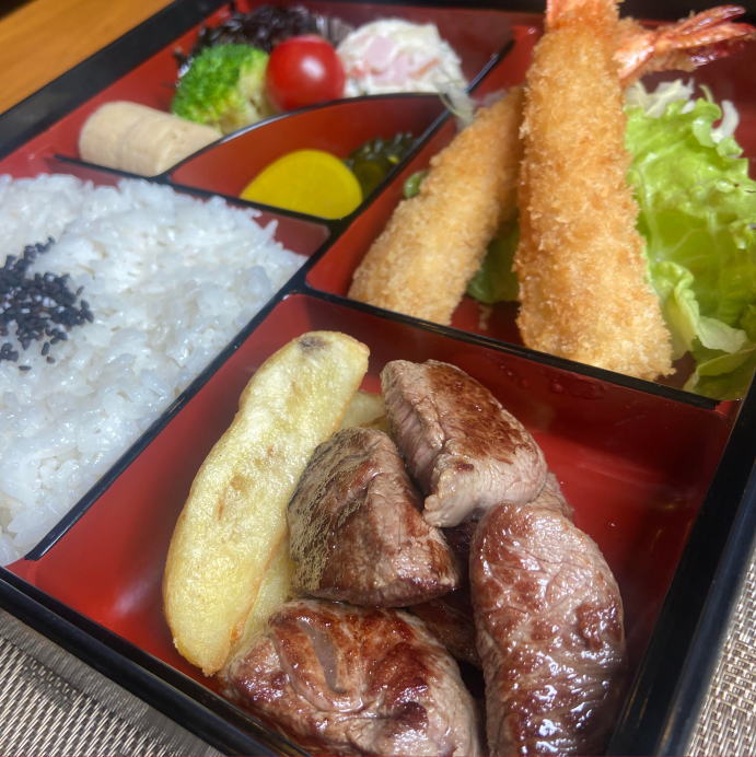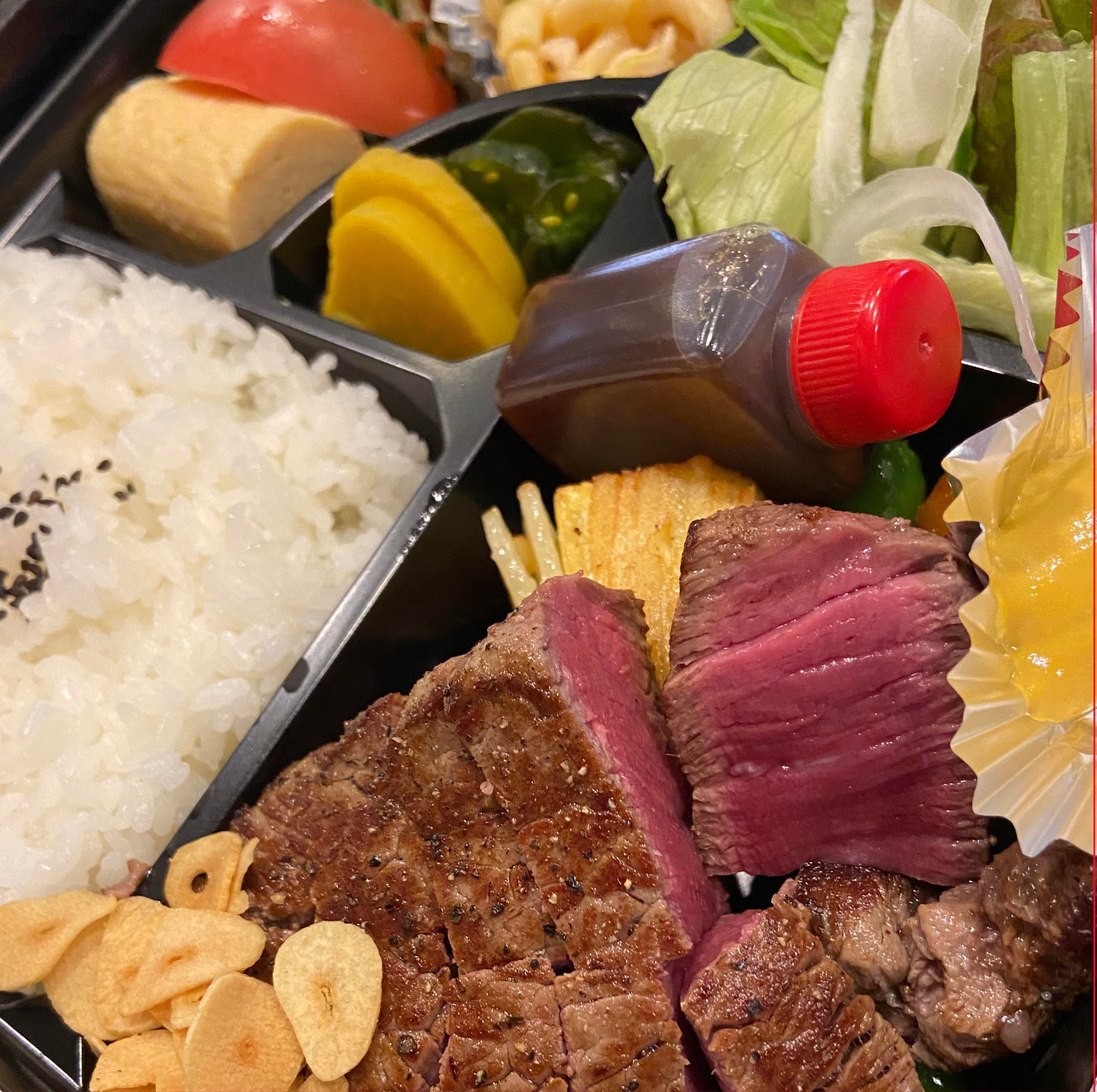 | ステーキ弁当(A) 2,400円 (肉増量)3,500円 |