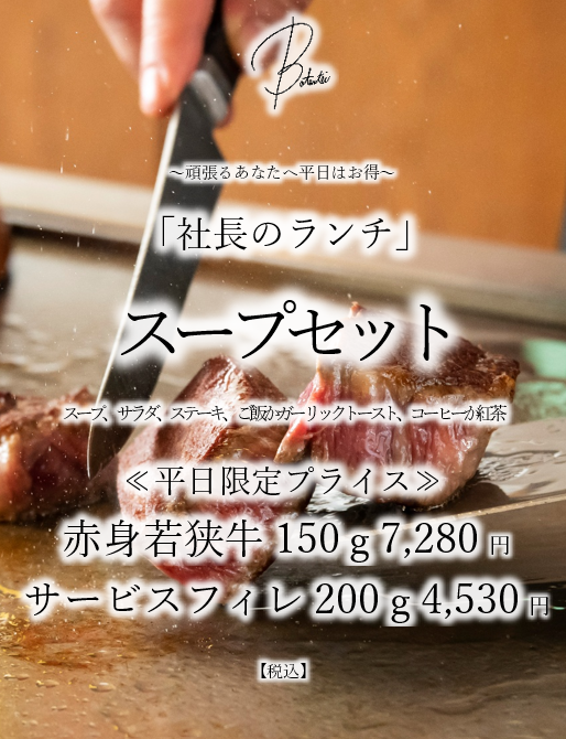 ※迷ったら赤身若狭牛150gのスープセットをどうぞ。