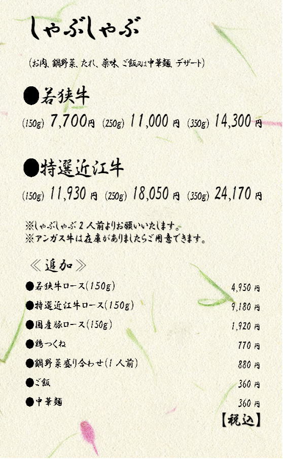 しゃぶしゃぶ宴会コース