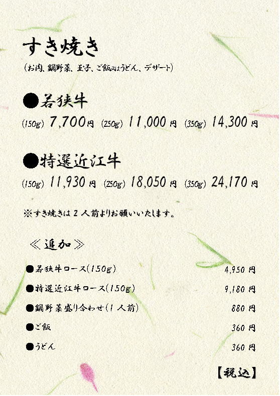 敦賀で唯一の高級しゃぶしゃぶ、すき焼き店。