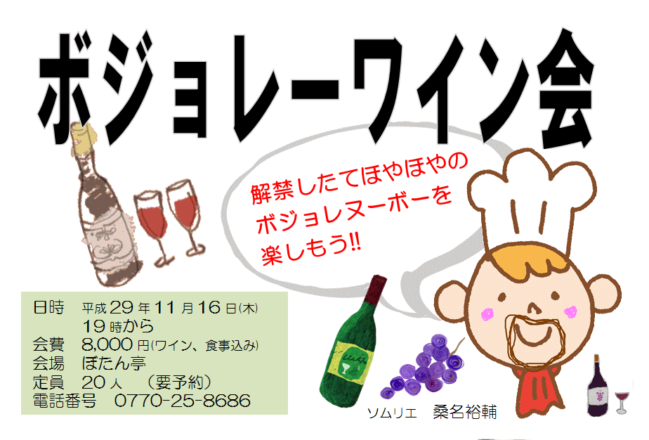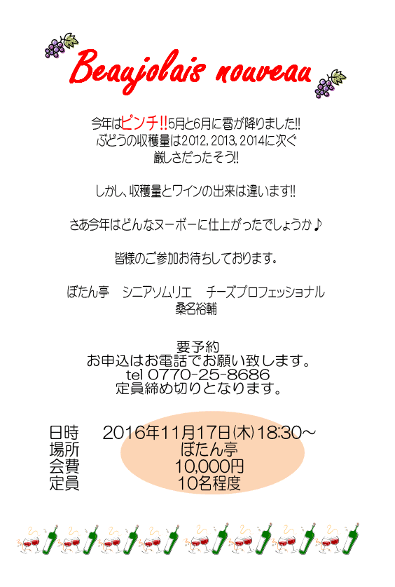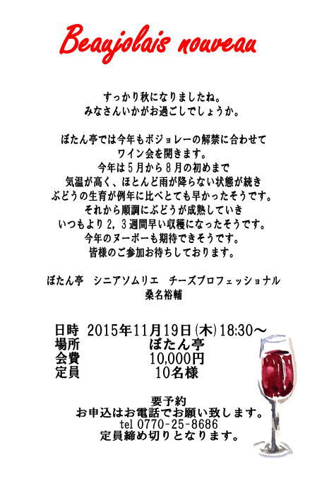 待ちに待った11月第三木曜日!!! 越前ガニの次はボジョレヌーボーの解禁です! 今年のボジョレーは美味しいかな?!