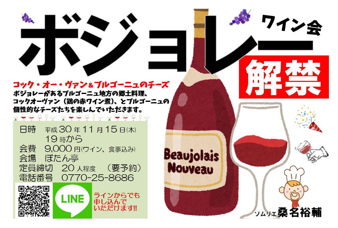 ↑ ワイン会のご予約はラインからでもオッケーです!! ≪お電話≫ tel0770-25-8686