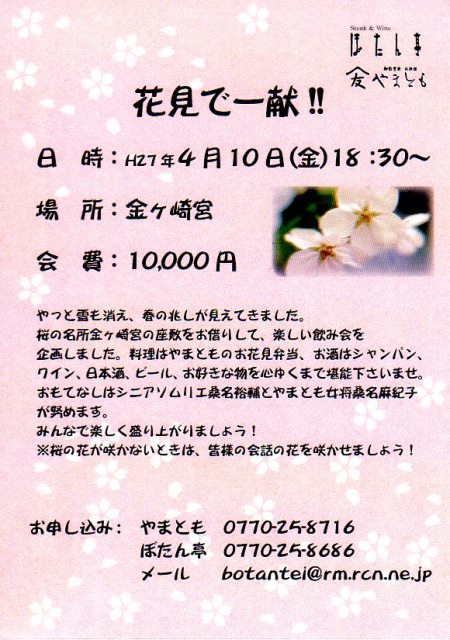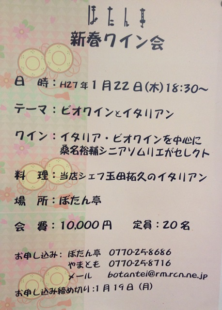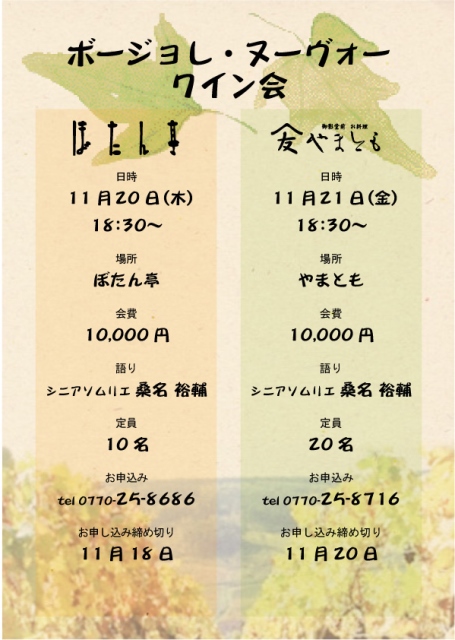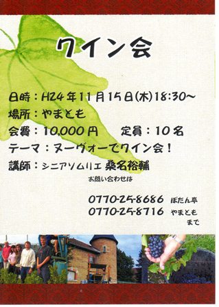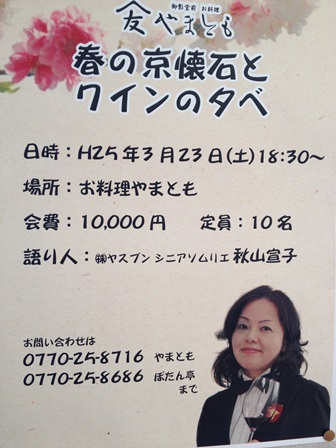 2月1日より新しくリニューアルした 「お料理やまとも」でワイン会をします!! 福井よりシニアソムリエ秋山さんが登場です!!